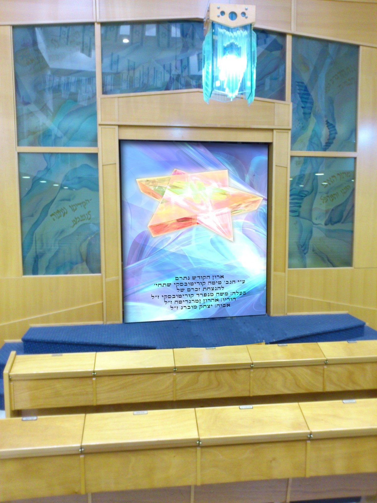 - שילוב של צבעים מרהיבים המשתלבים בהרמוניה מושלמת, היוצרים מראה מרשים שמאיר את ההיכל כמו רקיע.