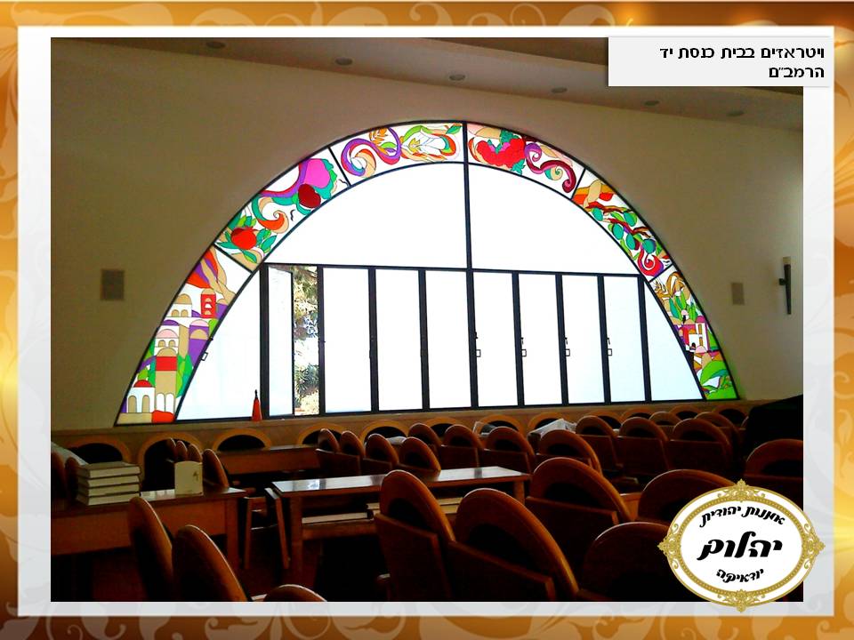 עיצוב ויטראז'ים ייחודיים בעבודת יד, המותאמים במיוחד לחלונות בתי כנסת ולמעקות עזרת נשים.