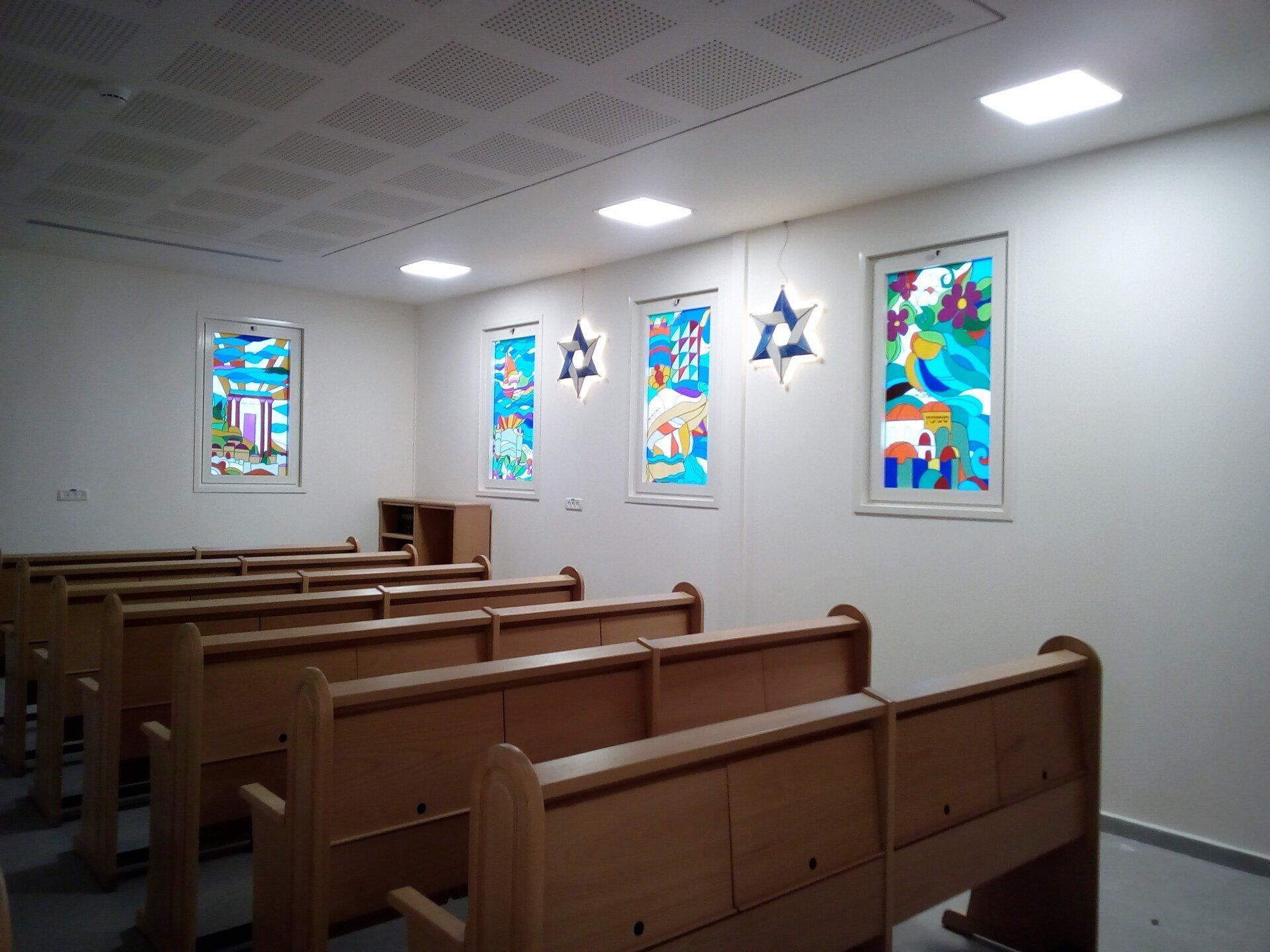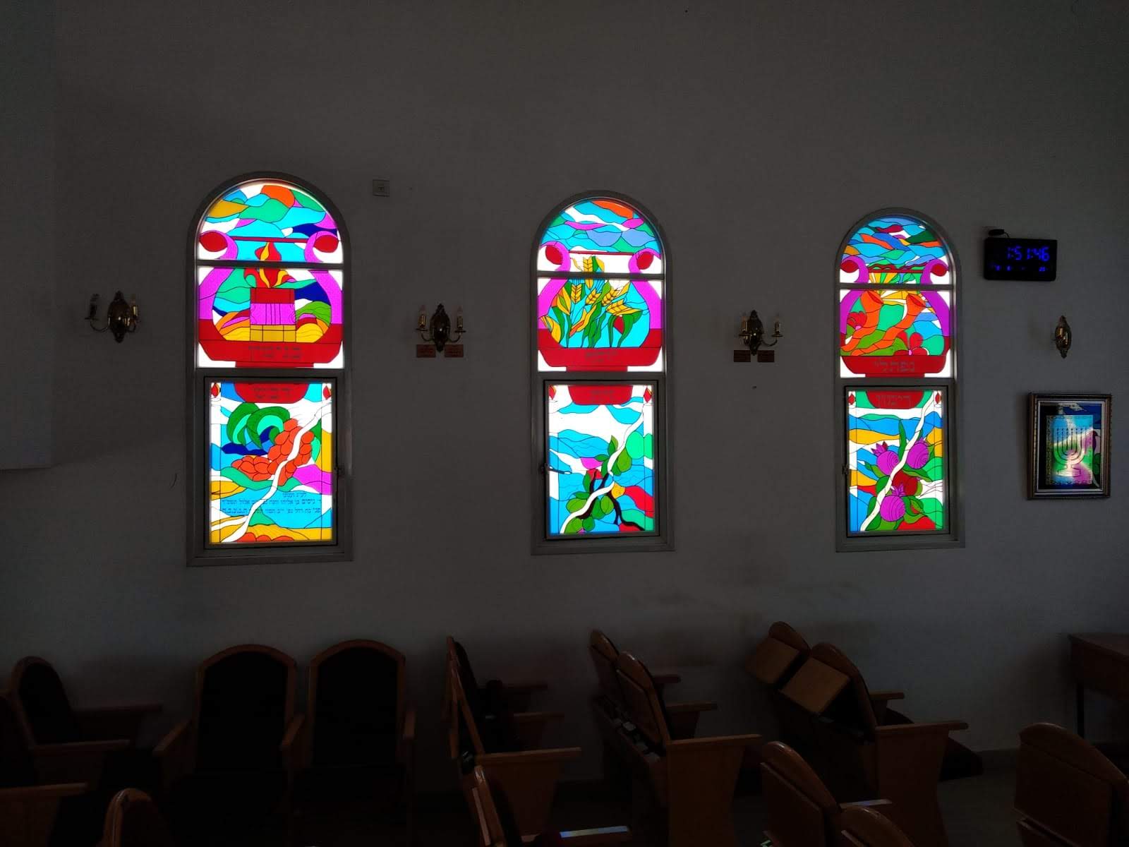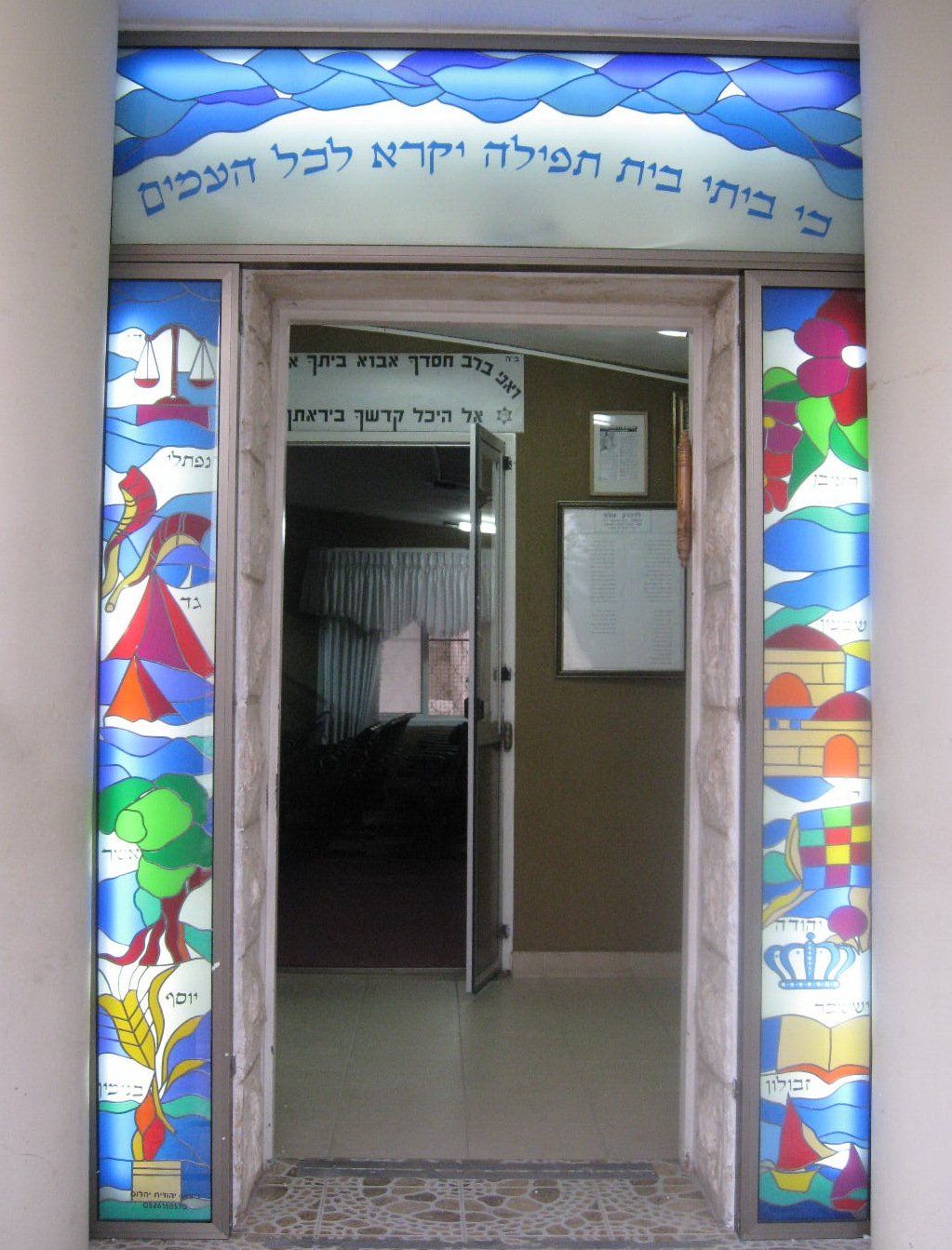 ויטראז'ים בחלונות ודלתות בית כנסת