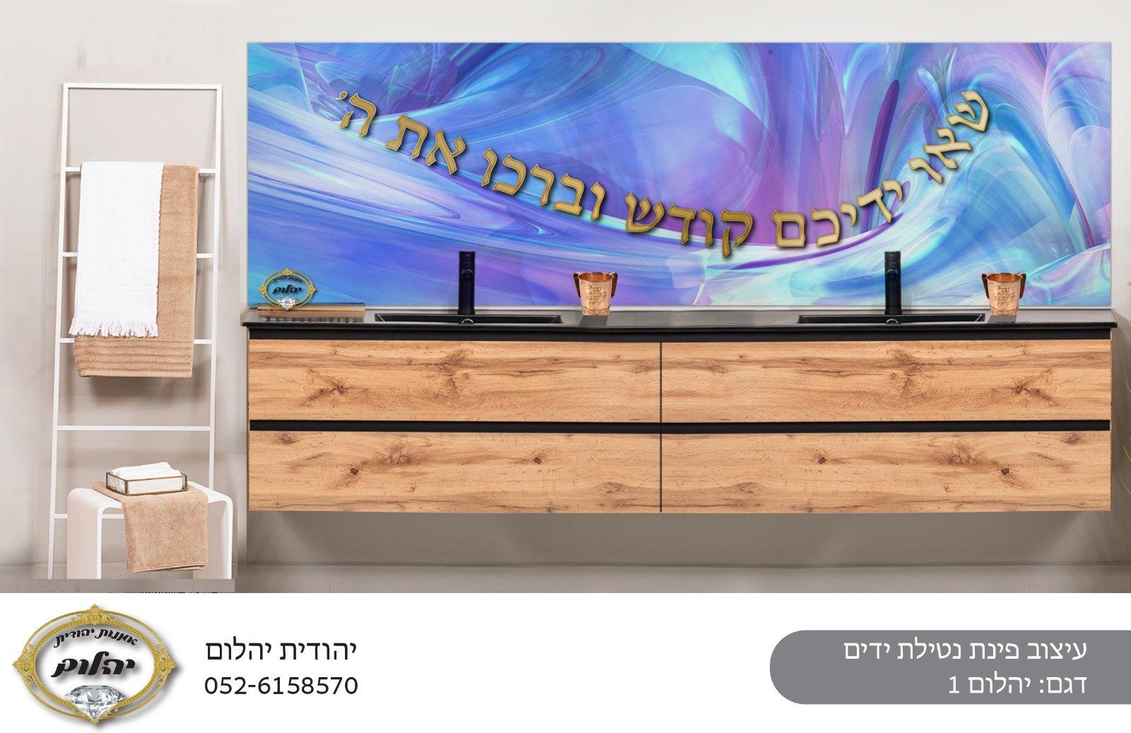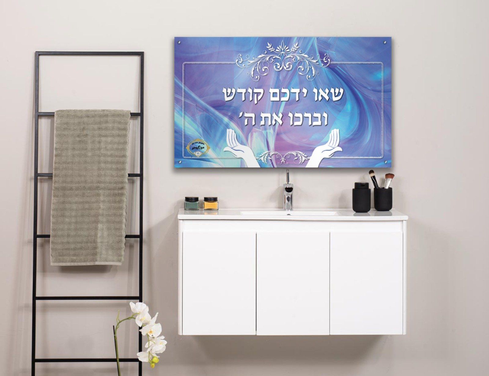 עיצוב על גבי זכוכית אקרילית אמנותית. בפינה לנטילת ידיים.