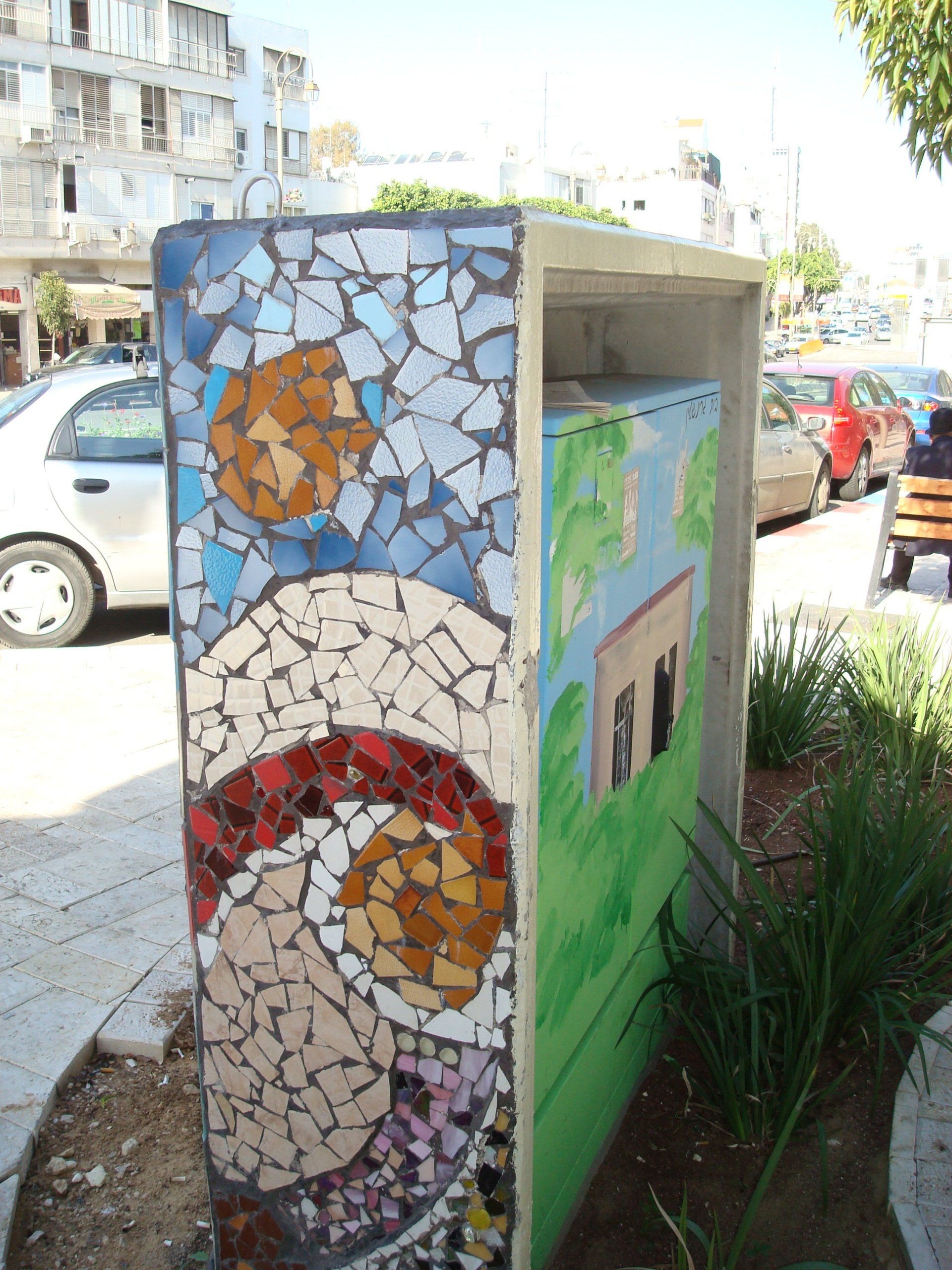 - עבודות פסיפס ברחוב חיים עוזר, המעטרות פילרים של חברת החשמל בסגנון אבסטרקטי.